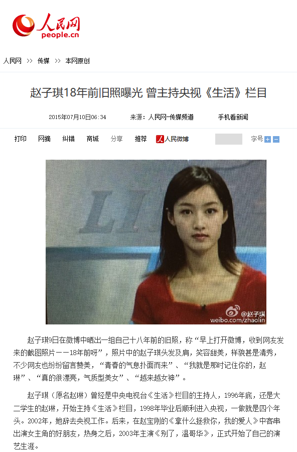 在赵子琪遴荐离开央视、转型演员的归并年。