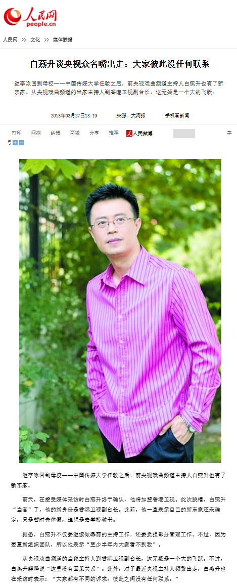 好在是金子总会发光的,在来到香港卫视之后,白燕升发达出色,被普及为副台长。